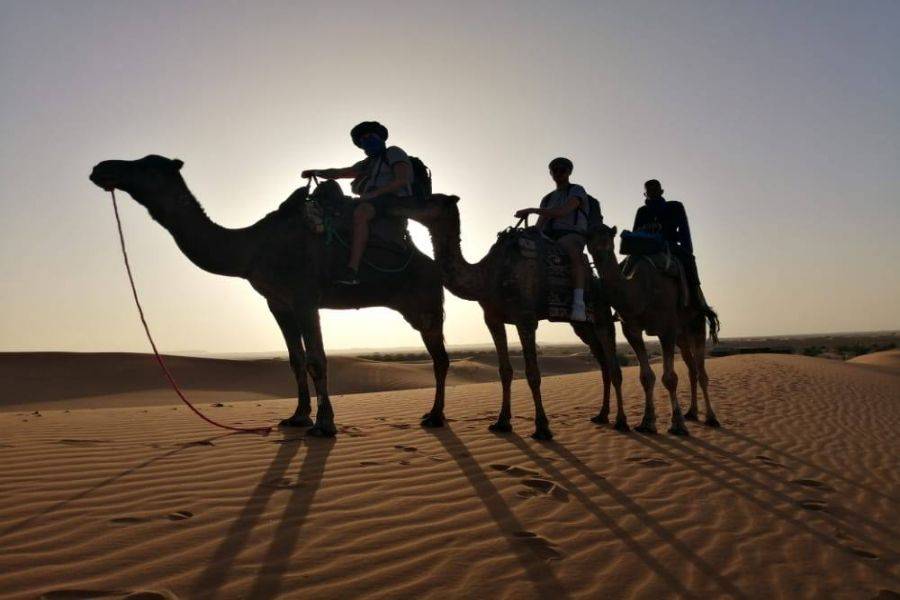 Deixando Merzouga com um grande momento pela manhã e com um delicioso café da manhã e nascer do sol. O material preparará um passeio de camelo para você chegar a Merzouga. E com uma saudação vamos deixar esse lugar lindo e incrível. Iremos passar de Errissani para visitar o souk tradicional e depois seguiremos para Errfoud, onde você visitará os fósseis e saberá mais sobre os itens muito antigos desta vila. Prove a gastronomia marroquina enquanto saboreia o almoço em um dos bons restaurantes da estrada. Veja o oásis de Tafilalt até chegar às gargantas de Todra, surpreenda-se com a natureza calma e ampla desse lugar e também desfrute tirando algumas fotos entre as duas gargantas. Em seguida, siga para Tinighir, que é uma pequena vila berbere, saiba mais sobre a cultura berbere e passe uma noite em um dos confortáveis riads com um delicioso jantar.