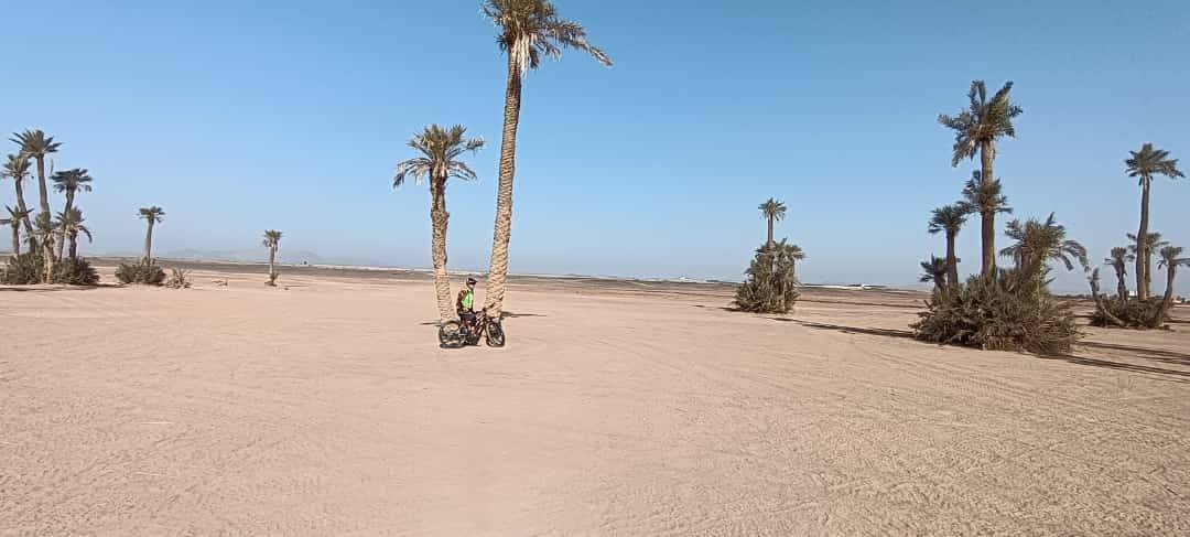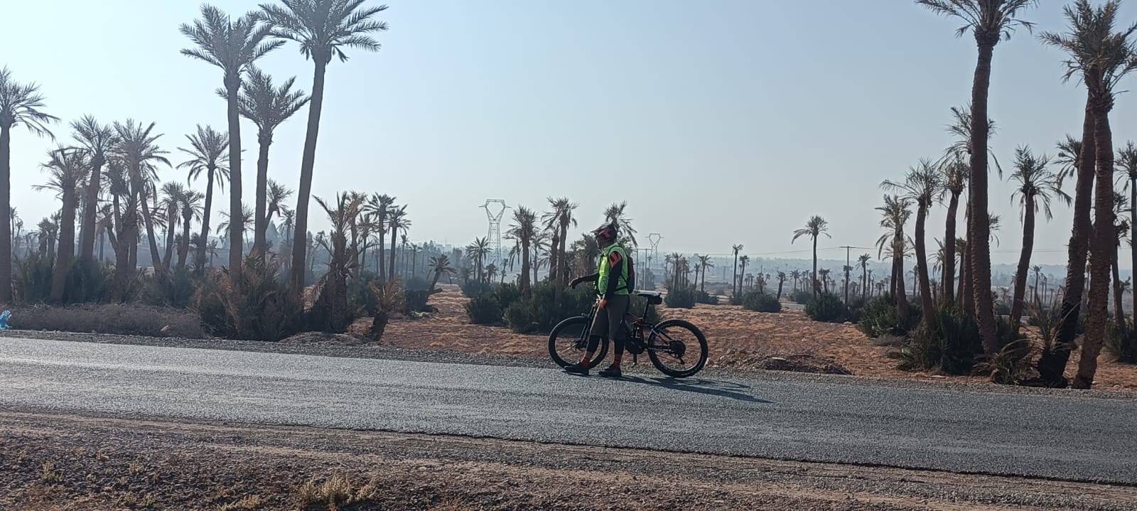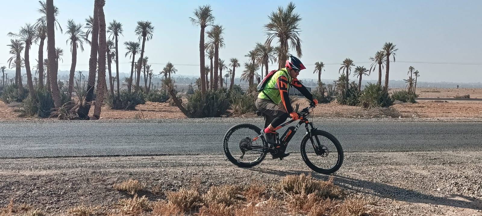 Passeio de bicicleta no Palmeraie (palmeiral) que é um oásis de palmeiras com várias centenas de milhares de palmeiras fora de Marraquexe, situado no limite da secção norte da cidade, a uma altitude de 580m acima do nível do mar, mede 8,0 km de comprimento e cobre uma vasta área de 140 km2, esta parte de Marraquexe é conhecida como um dos destinos favoritos em Marraquexe para os entusiastas dos desportos motorizados como ATVs 4/4 ou para fazer um passeio de camelo ou mesmo de balão.