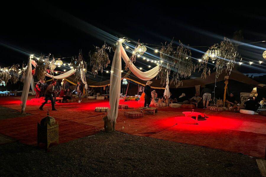 Surpreenda-se à noite com um show especial de animação ao vivo de um delicioso restaurante marroquino em um restaurante muito famoso