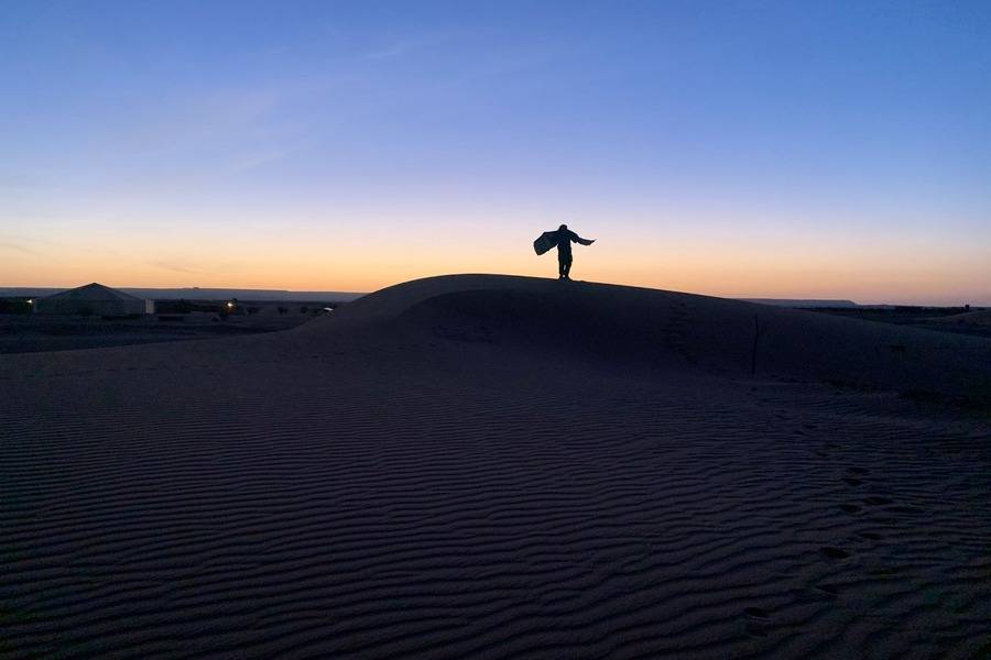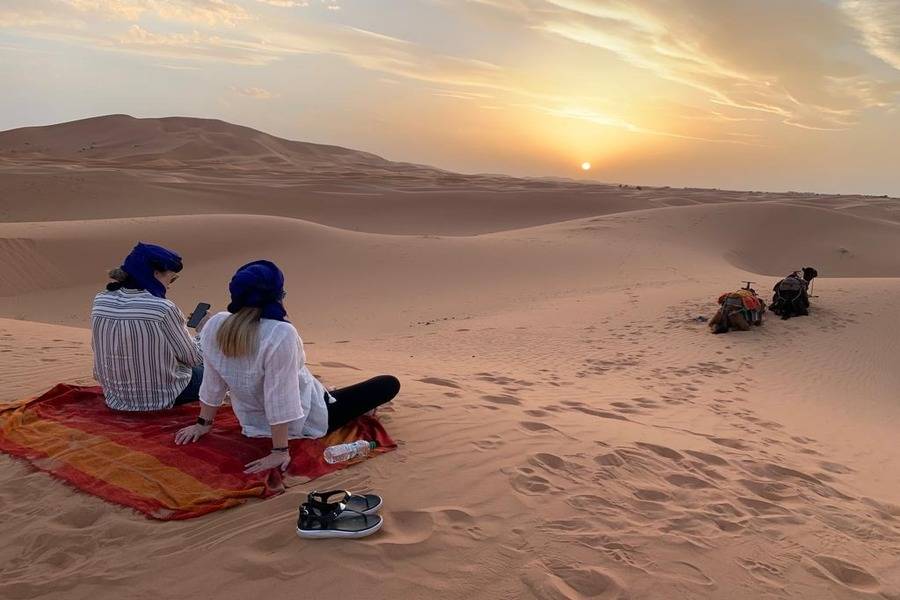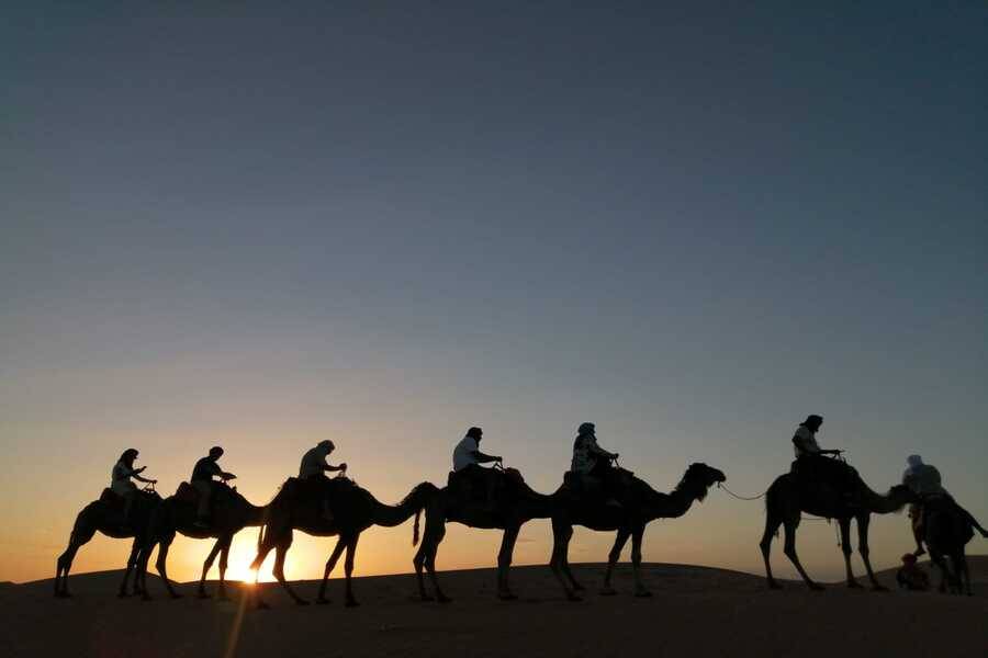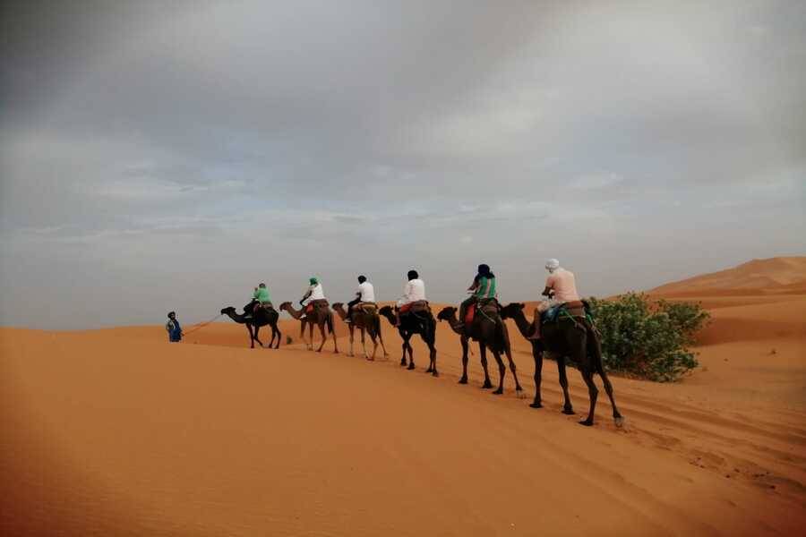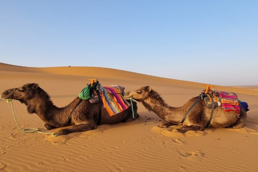 - Use jeans, calças ou shorts longos para o passeio de camelo para ter uma caminhada confortável nas dunas de Erg Chebbi.