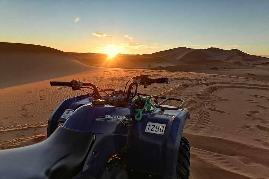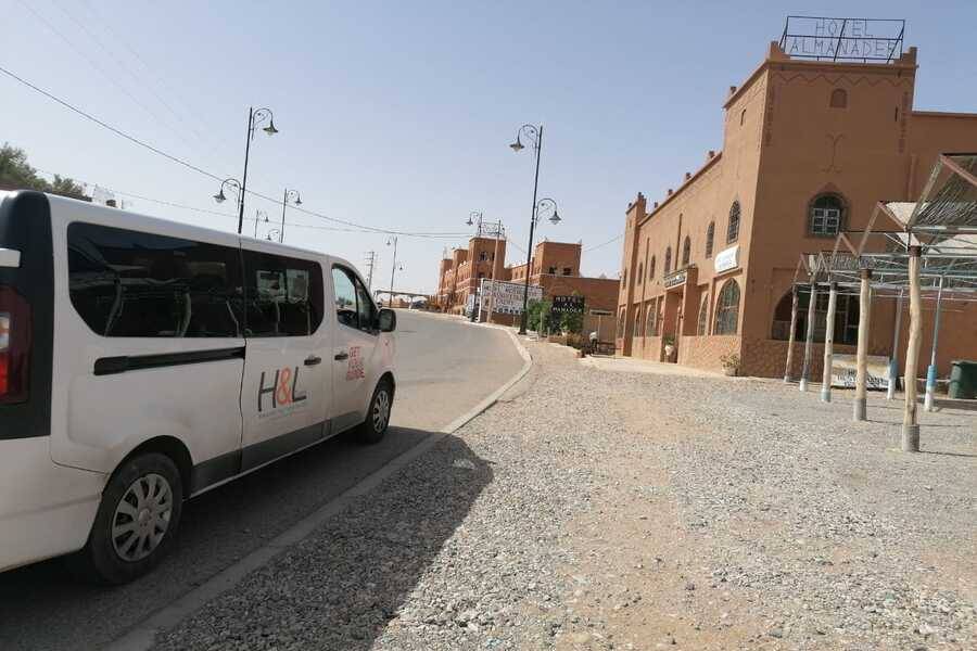 Após algum tempo livre para desfrutar da imensidão das enormes falésias, e almoço em um café local (Livre), continuamos no início da tarde para Rissani, famosa por seu mercado de tâmaras e ponto de partida das antigas caravanas comerciais cruzando o deserto do Saara até Tombouctou. Após uma rápida parada, continuaremos a Merzouga dirigindo por uma paisagem rochosa de deserto.