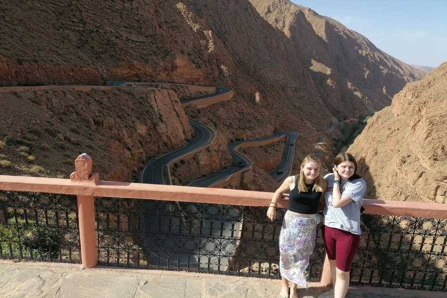 Após o almoço livre em um dos cafés locais, continue até o vale de Dades passando por Ouarzazate, Skoura Oasis, Klaa Mgouna, a capital do vale das rosas, e famosa por suas fábricas de destilação artesanal de água de rosas.