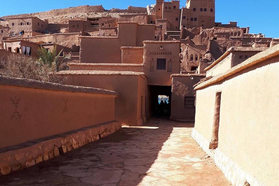 Suba em estradas sinuosas até a famosa passagem de Tizi Ntichka antes de chegar a Kasbah Ait Ben Haddou, a primeira grande parada hoje para passear. O vilarejo berbere fortificado de Ait Ben Haddou é um marco listado pela UNESCO e também é conhecido como cenário de grandes épicos de Hollywood, apenas para citar alguns filmes que usaram o vilarejo para filmagens: Reino dos Céus, Lawrence da Arábia e Gladiador . Atravesse o rio que separa o Kasbah da estrada principal e explore a vila à vontade. Caso deseje contratar um guia local, eles estão disponíveis no local.
