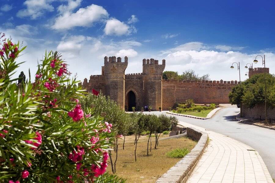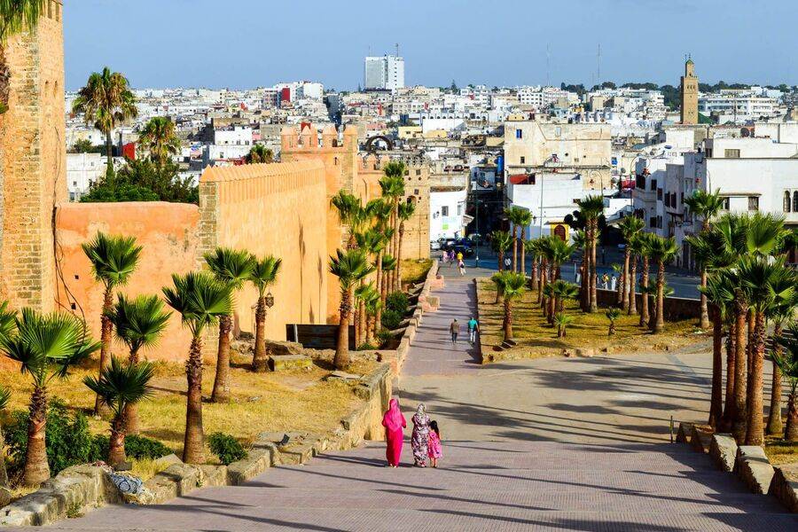 Em seguida, continuamos para Rabat visitando a cidade, incluindo o Palácio Real, o Kasbah Ouadaya com seus jardins, o Mausoléu de Mohammed V e a Torre Hassan II. Ficamos para jantar e pernoitar num riad em Rabat.