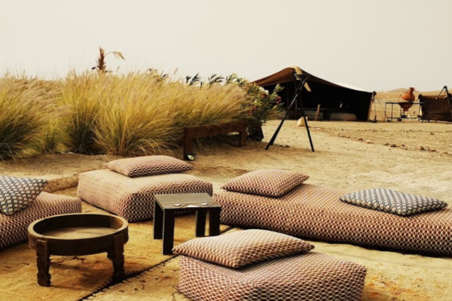 Seja recebido no acampamento do deserto e pernoite em um acampamento típico.