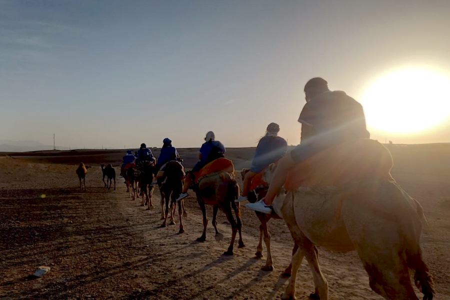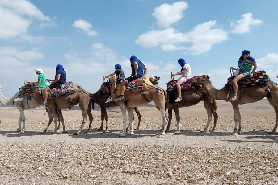 Experimente andar de camelo no deserto de Agafay.