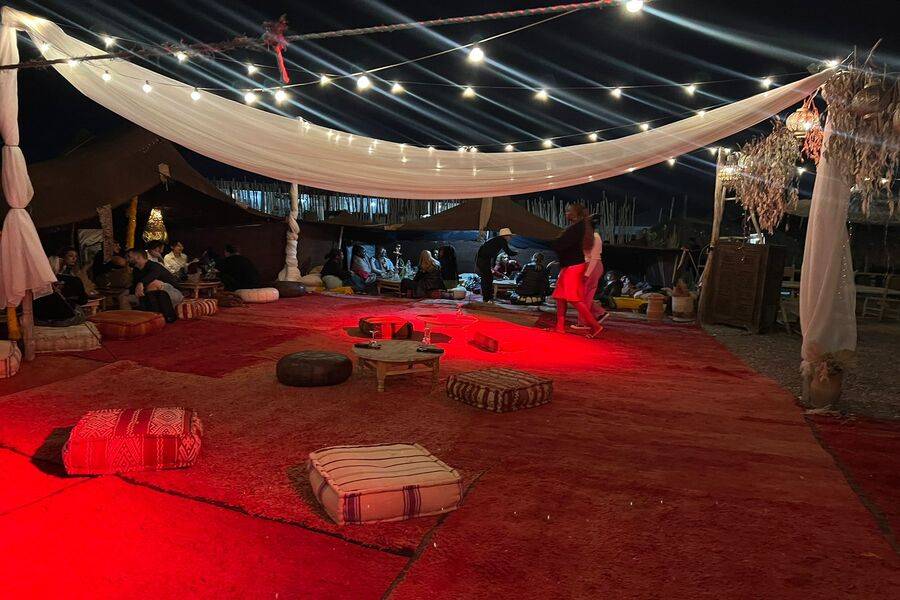 Surpreenda-se à noite com um show especial de animação ao vivo de um delicioso restaurante marroquino em um restaurante muito famoso