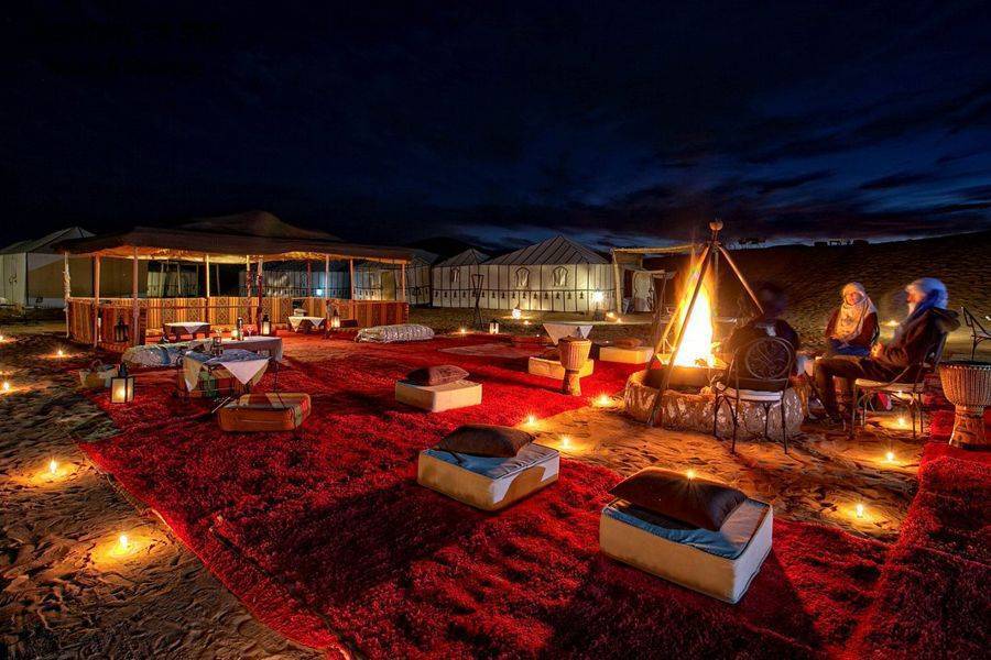 • Conduza-o com um passeio de camelo para chegar ao seu acampamento com um agradável deserto.